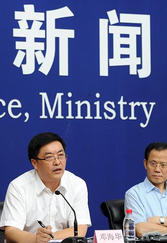 8月13日,衛(wèi)生部新聞發(fā)言人鄧海華(左)在回答記者提問。8月13日,在衛(wèi)生部舉行的例行新聞發(fā)布會(huì)上,衛(wèi)生部食品安全與衛(wèi)生監(jiān)督局局長蘇志介紹,《預(yù)包裝食品營養(yǎng)標(biāo)簽通則》將于2013年1月1日正式施行,這標(biāo)志著我國全面推行食品營養(yǎng)標(biāo)簽管理制度,對指導(dǎo)公眾合理選擇食品,促進(jìn)膳食營養(yǎng)平衡,降低慢性非傳染性疾病風(fēng)險(xiǎn)具有重要意義。新華社記者 何俊昌 攝